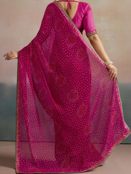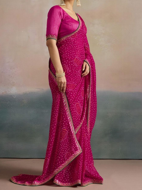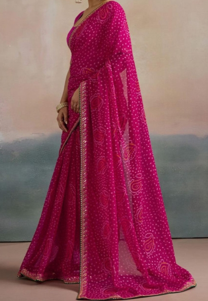 - Pink bandhani saree