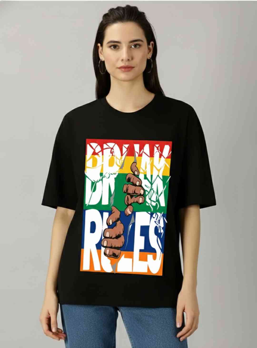 Be the first to review “Women Printed Round Neck Drop-Shoulder Sleeves Oversized T-shirt”